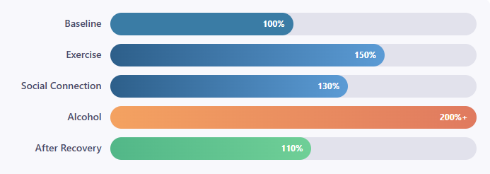 → Feeling more stressed initially when cutting back is actually progress. It means your stress response system is coming back online — which means you can actually start processing and resolving stress instead of just numbing it.