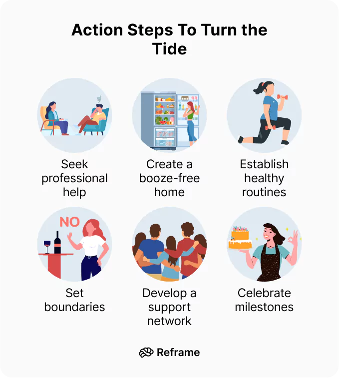 Finally, here are some additional action steps to help you and your partner address the challenge of alcohol misuse head-on in your marriage.